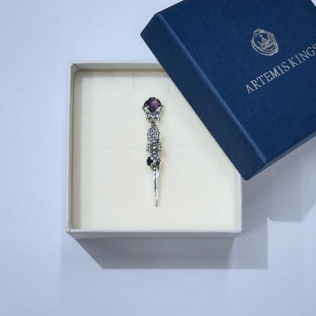【ARTEMIS KINGS】 緑紫虹ドージェダガーピアス。 神秘と荘厳な造形が融合したドージェ型ダガーピアス! ※こちらは1ケ(片耳)からの販売になります お気をつけ下さい。 [material] silver925 /シンセティックアレキサンドライト/ 黒蝶貝/キュービックジルコニアBK 縦42mm 横8mm