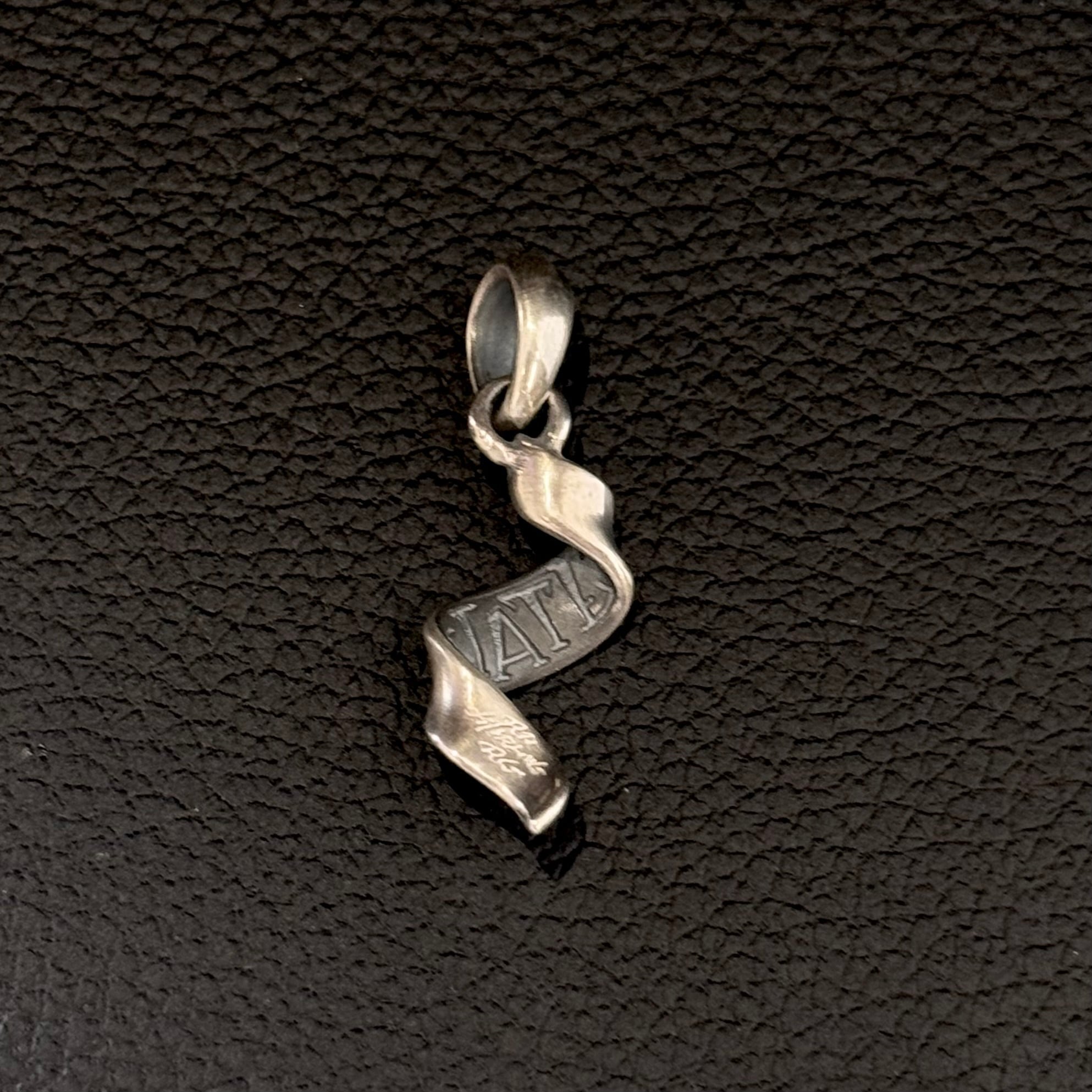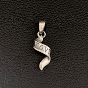 リボンが風にひらめく様を表現されたペンダントトップ。LOVE/HATEの2種類がございます。