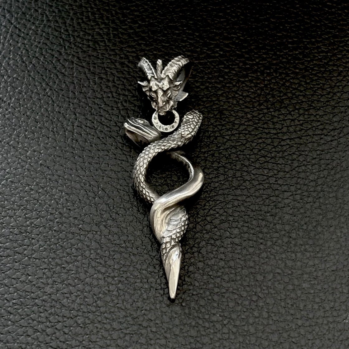 ヘルメスの杖カドゥケウスの様にバフォメットの下腹部からは雄雌の蛇が生命の螺旋を