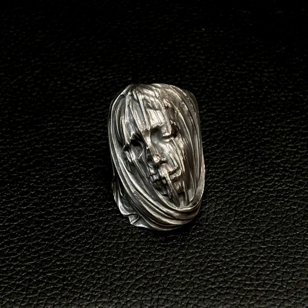 ヴェールを纏った女性、スカルがモチーフのリングです。
