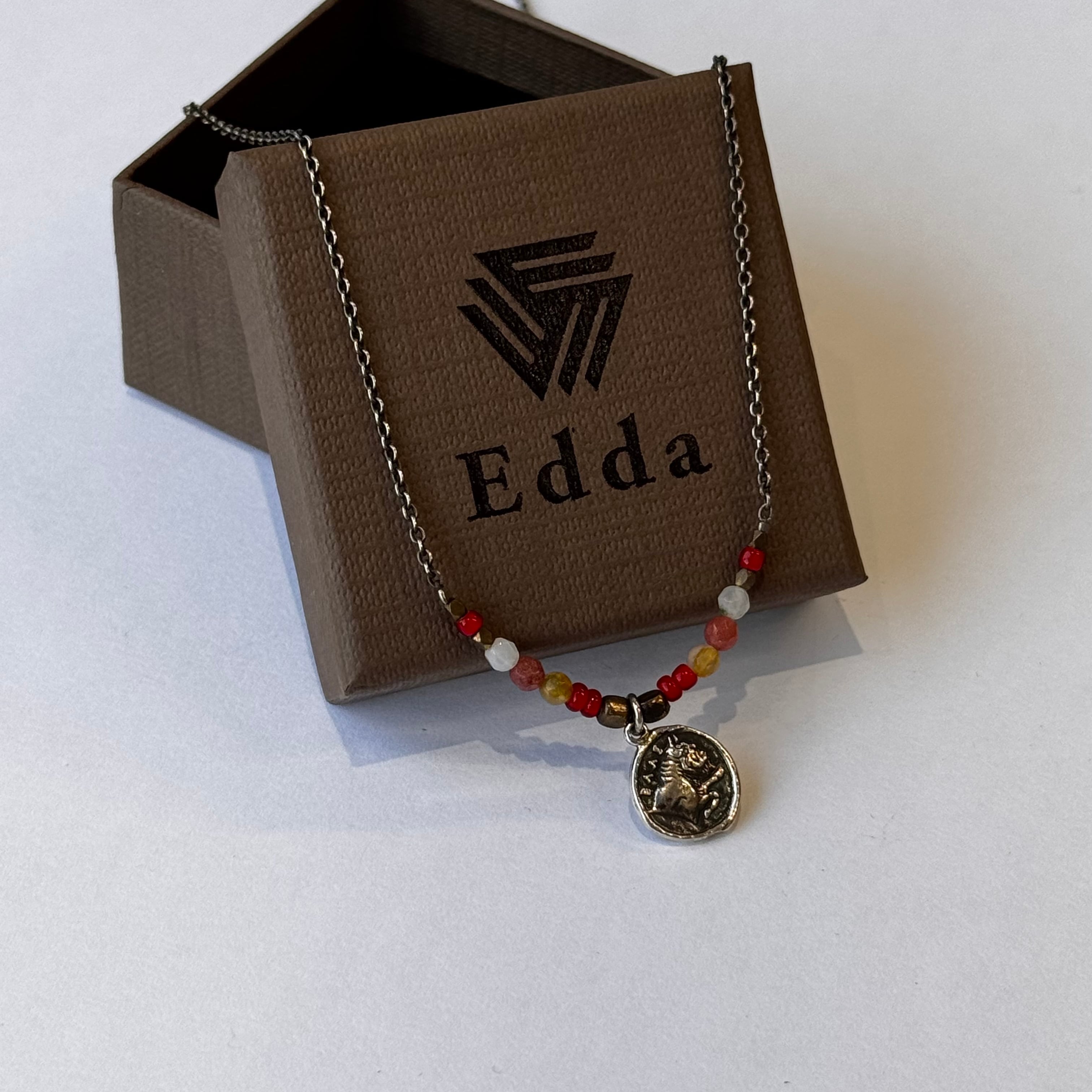 【Edda】 チェーンとコイントップが一体型の ネックレスです。 チェーンの長さは45〜50cmで調節可能です。 [material] silver925/brass/ビーズ