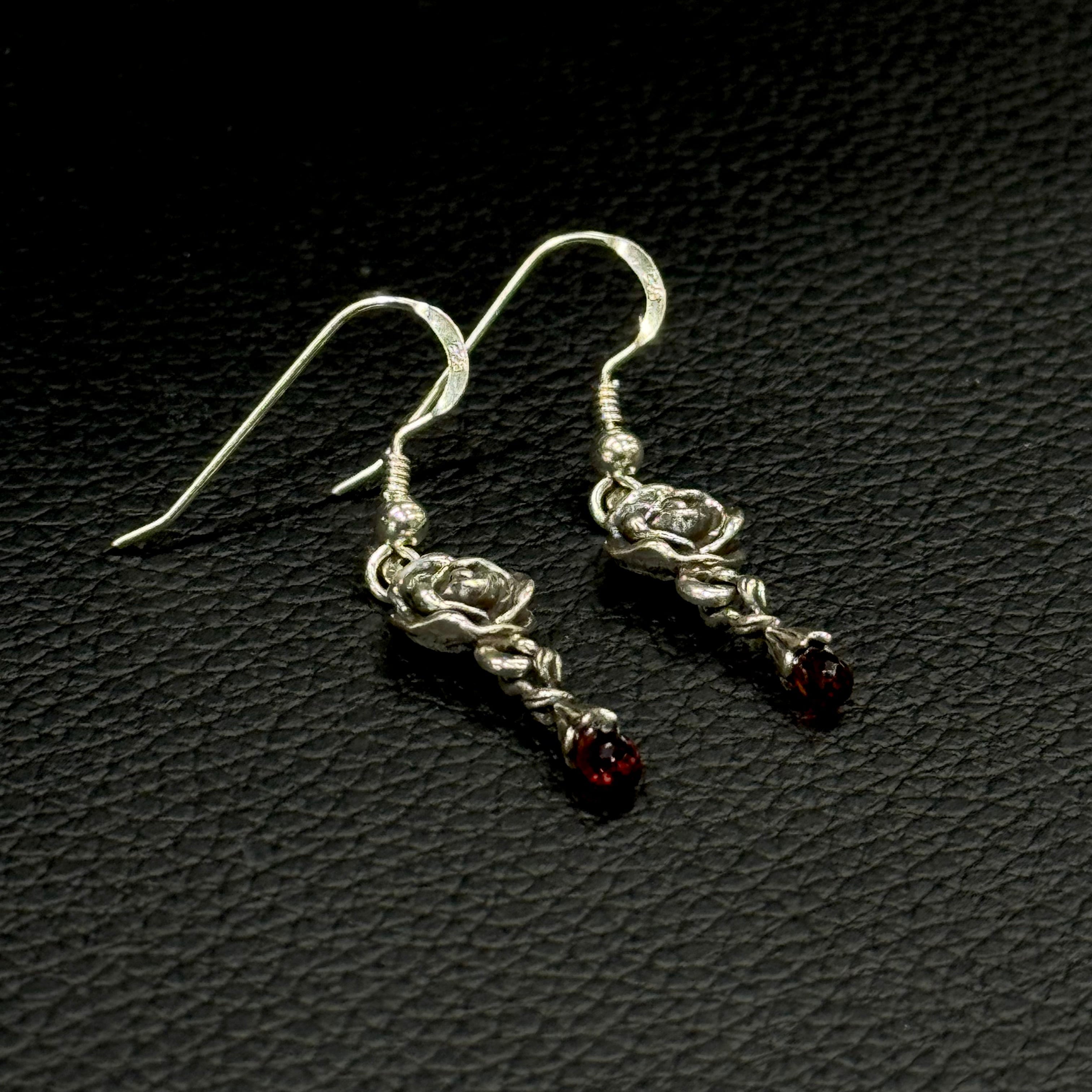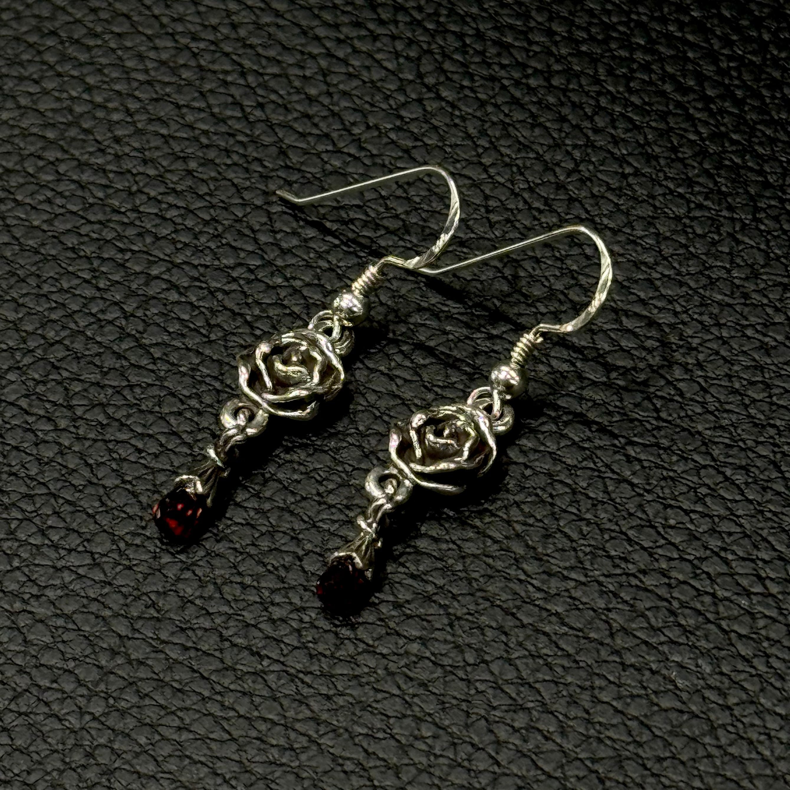 意味合いの深紅のガーネットかセットされた美しいピアス。