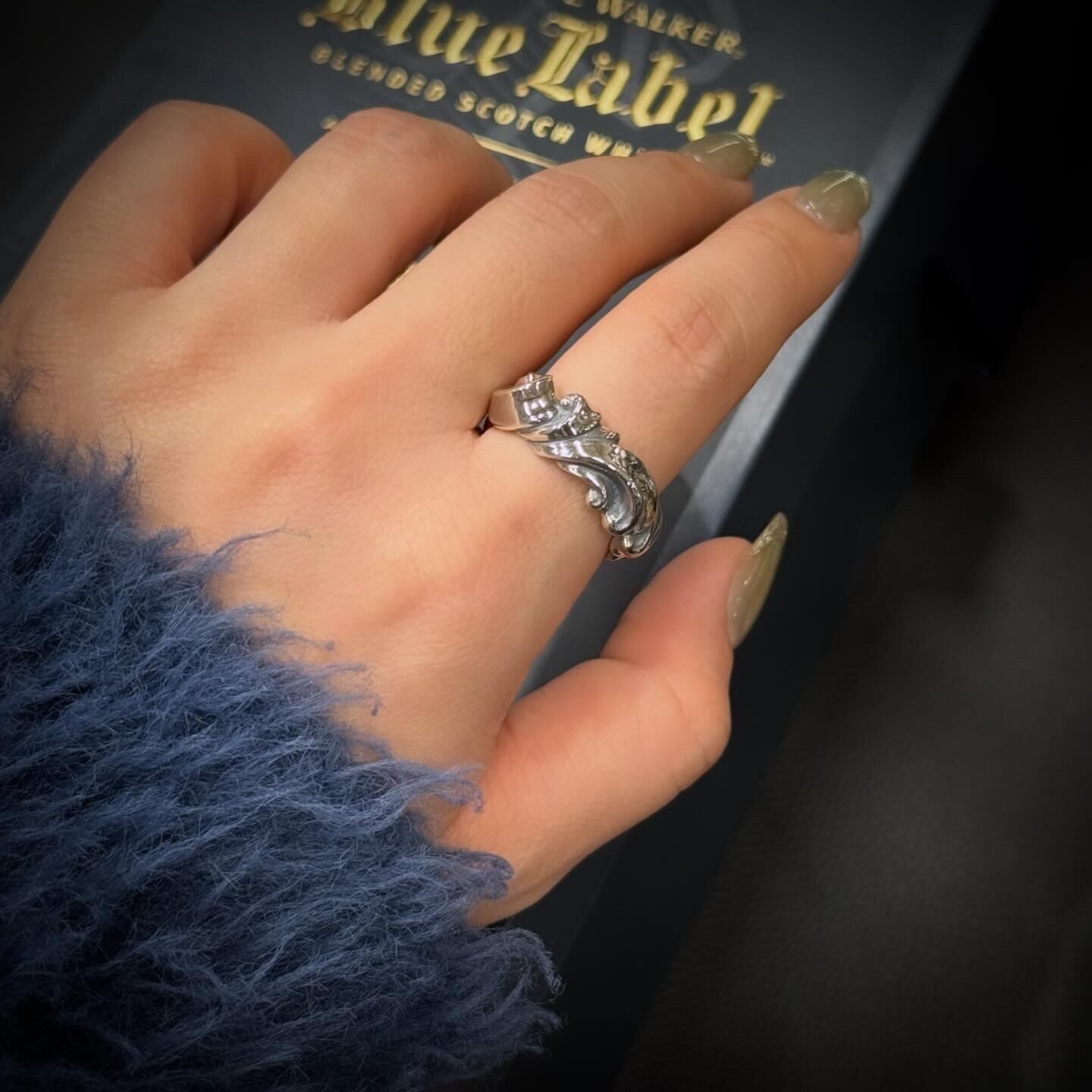 リーフの様なデザインを美しい流曲線でリングへと落とし込んだ